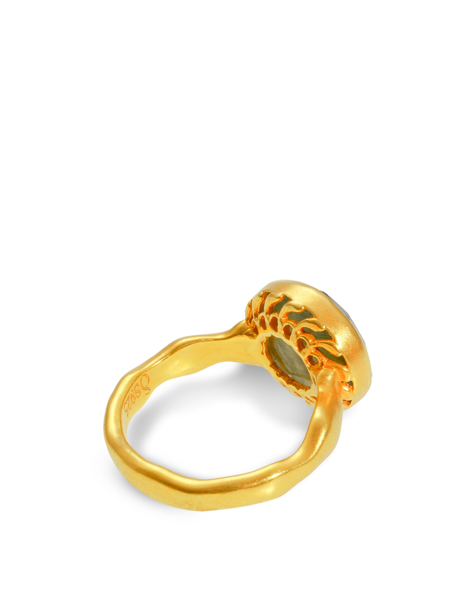Connect to your inner magic with this beautiful gold-plated silver ring. It has a simple round shape and a glowing labradorite stone.